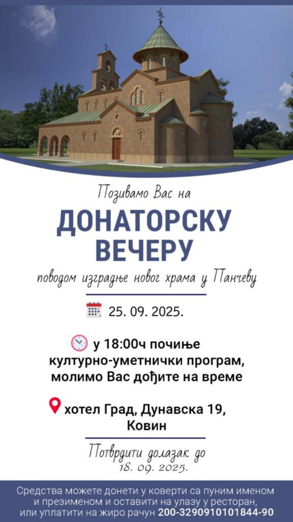11. маја 2025. године у 18. часова у Панчеву у храму на Стрелишту